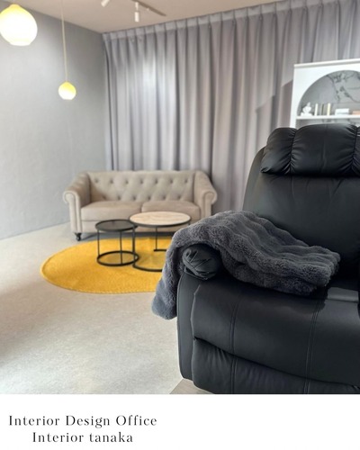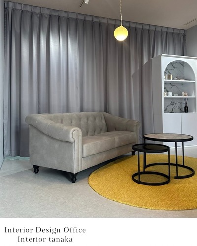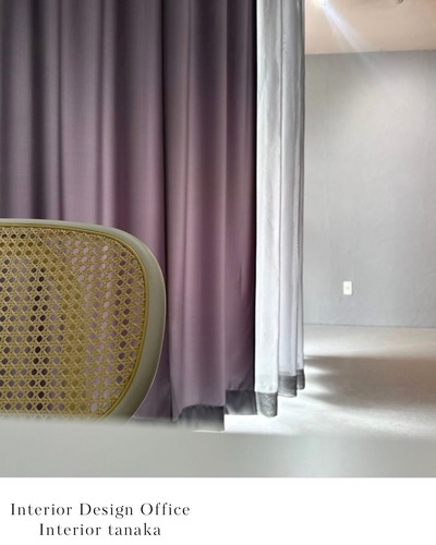 グレートーンをベースに、カーテンの縫製にこだわり、間仕切りとして活用。